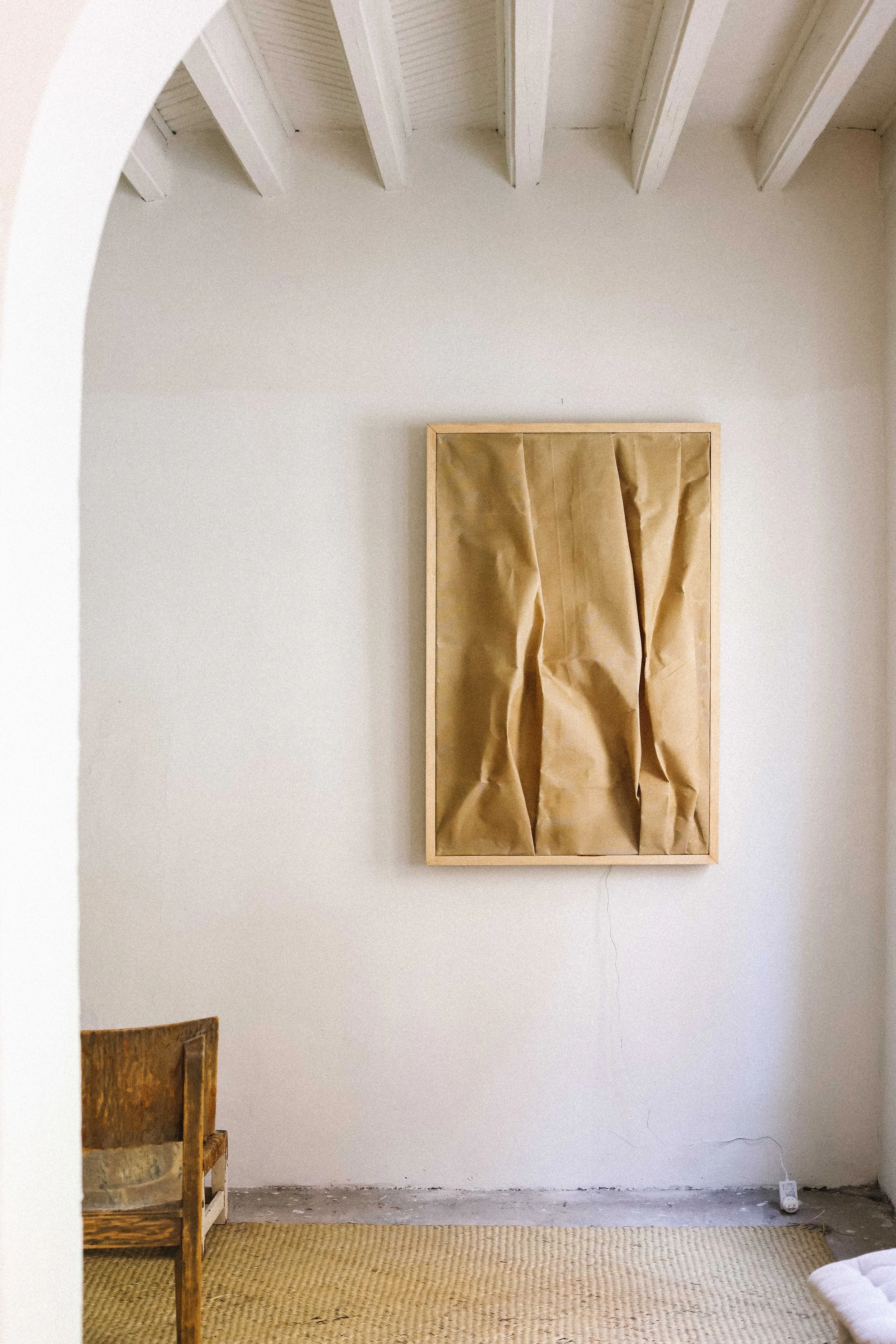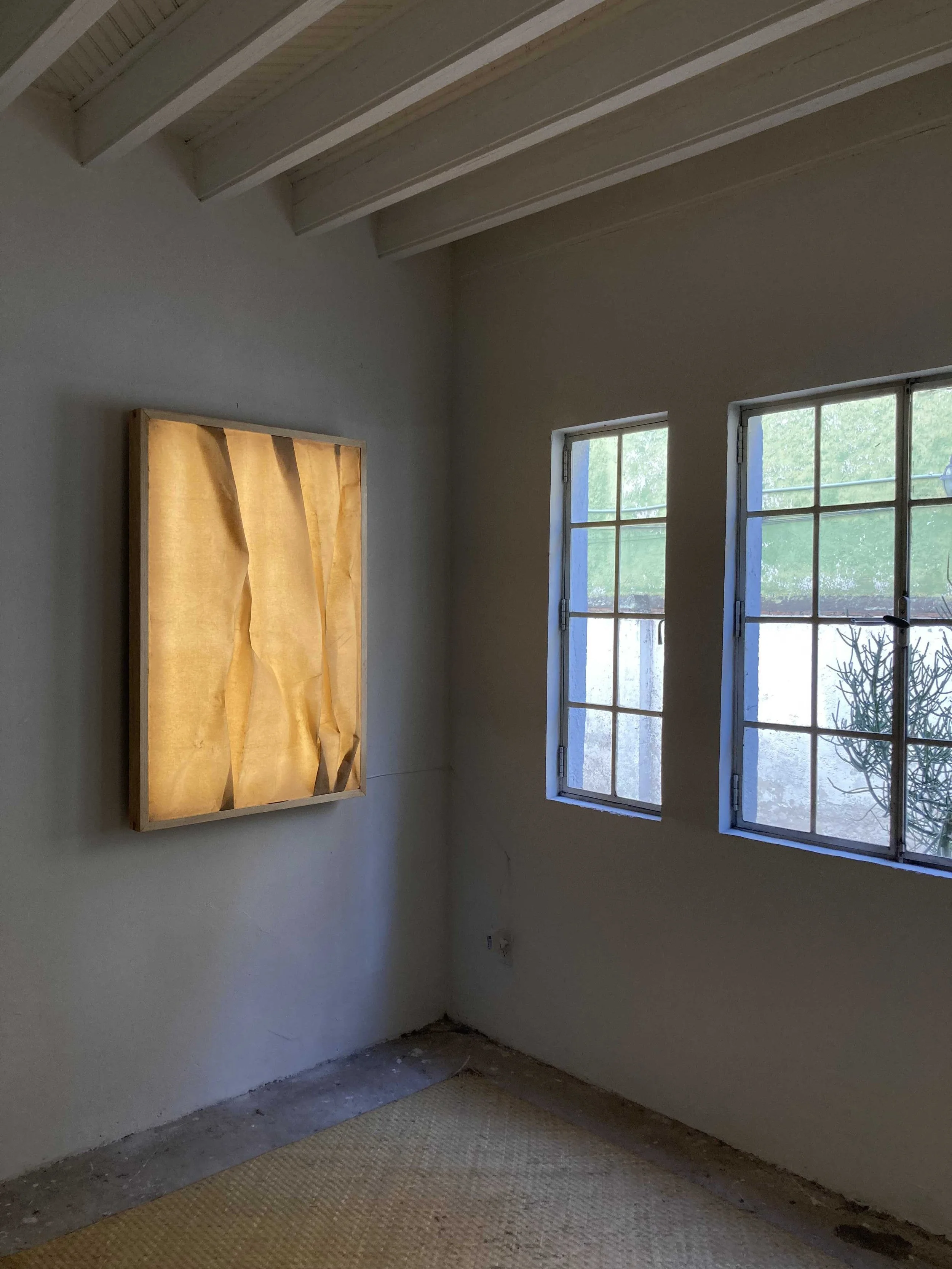 Beeswax Frame is a lighting piece designed for wall and floor applications. Crafted from beeswaxed canvas, the lampshade diffuses the LED light source into a warm, textured glow. Infused with the subtle scent of honey and propolis, the fragrance is gently released when the light is activated.