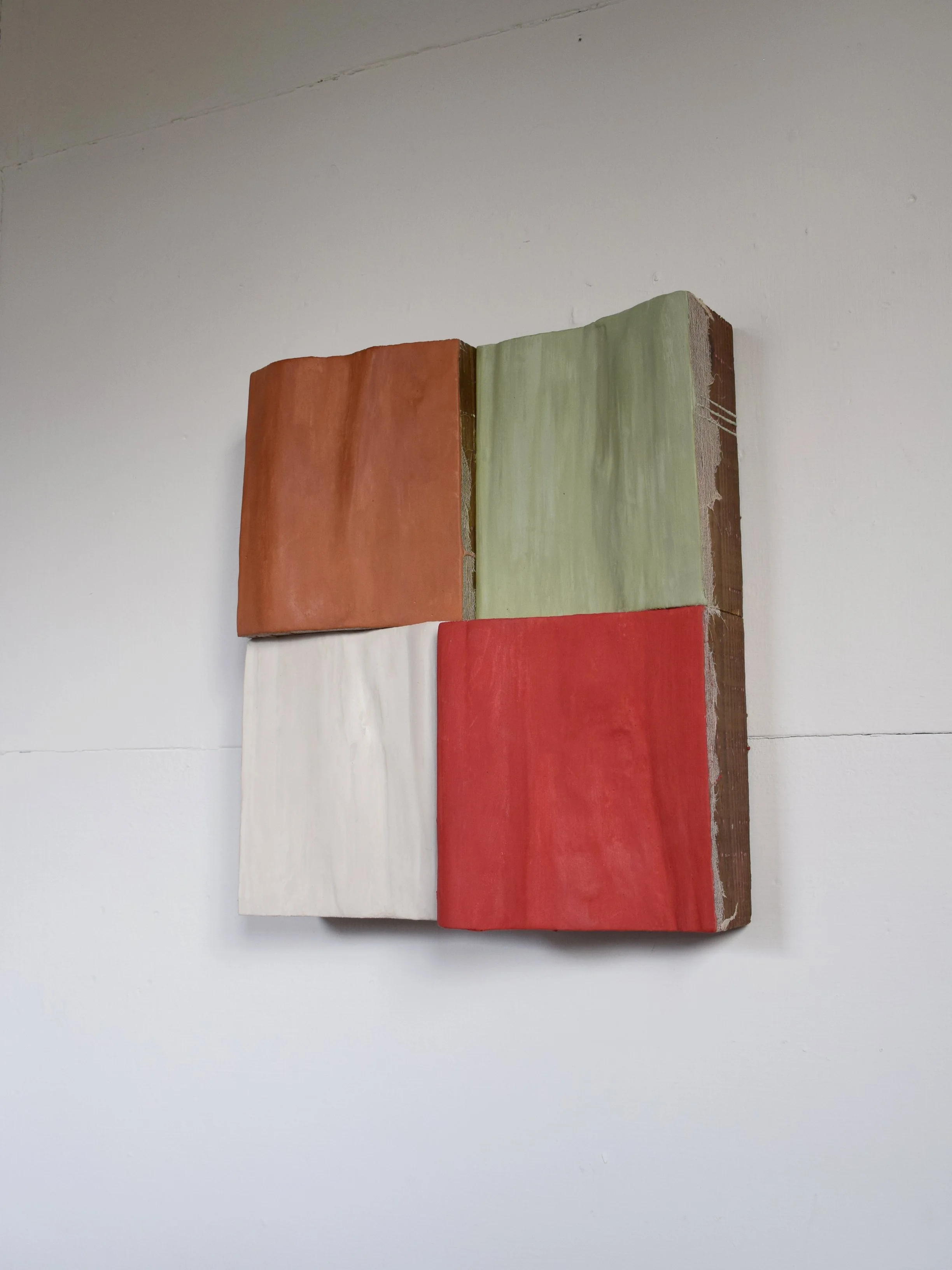 Oliver Guyon’s (United Kingdom, 1994) work is rooted within the expanded field of painting. It questions the possibilities of what painting is. These paintings explore the object potential of space, colour, line and edge. Raised planes are used as a device to create tension between surface and depth. The effect of light on concave and convex surfaces extends the tonality of a given colour field.